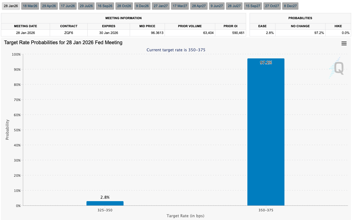 Probabilidades de la tasa objetivo de la Fed para la reunión del FOMC del 28 de enero (captura de pantalla). Fuente: CME Group