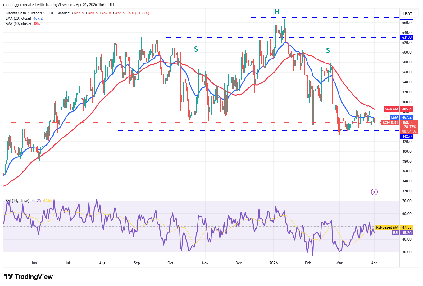 Bitcoin Cash (BCH) ha estado cotizando entre la media móvil simple de 50 días ($485) y el soporte de $443 en los últimos días.