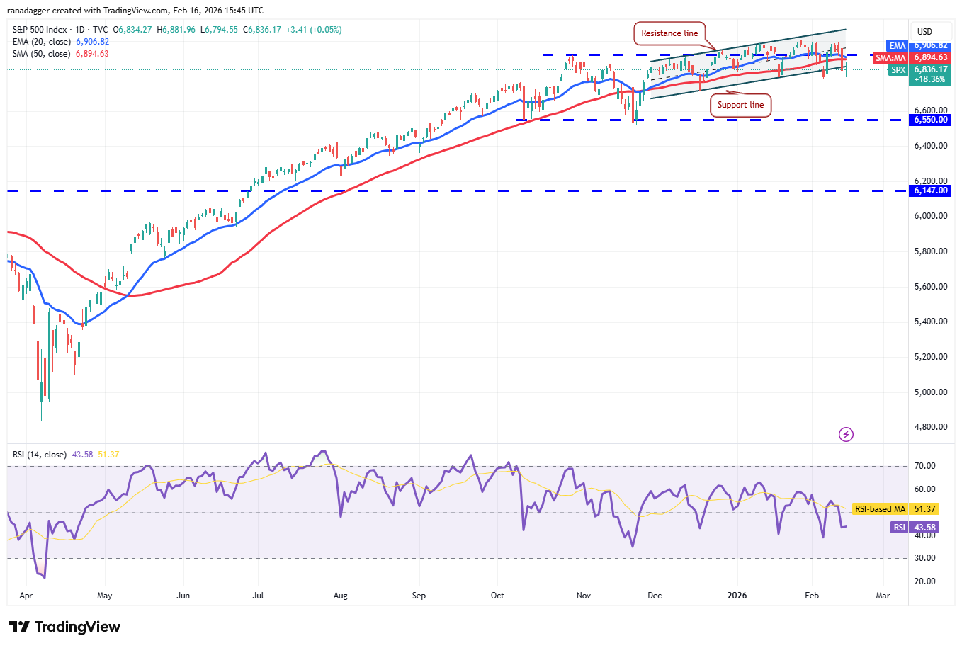 El índice S&P 500 (SPX) está experimentando una dura batalla entre toros y osos en la línea de soporte del patrón de canal ascendente.