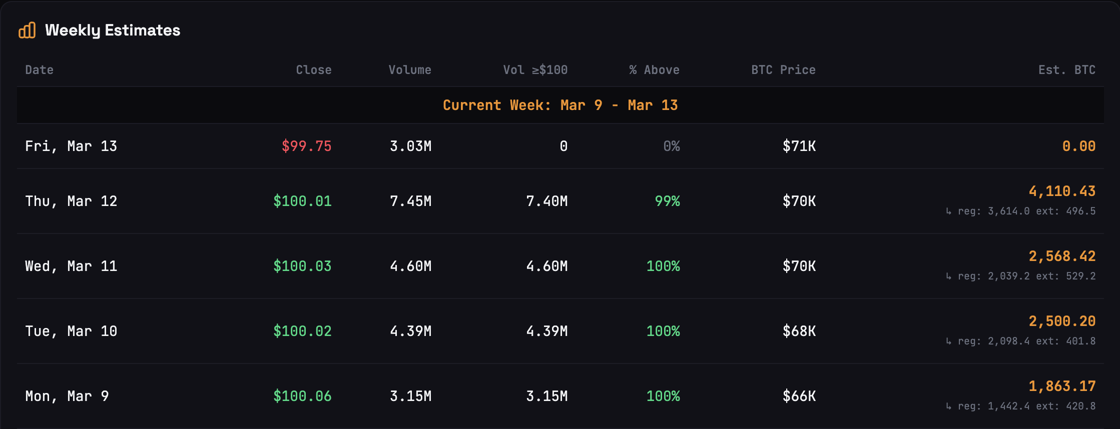 La semana pasada, la estrategia adquirió 17,994 BTC, equivalentes a aproximadamente $1.28 mil millones en ese momento. Cerca del 30% de la asignación de BTC fue financiada por los ingresos de la venta de STRC.
