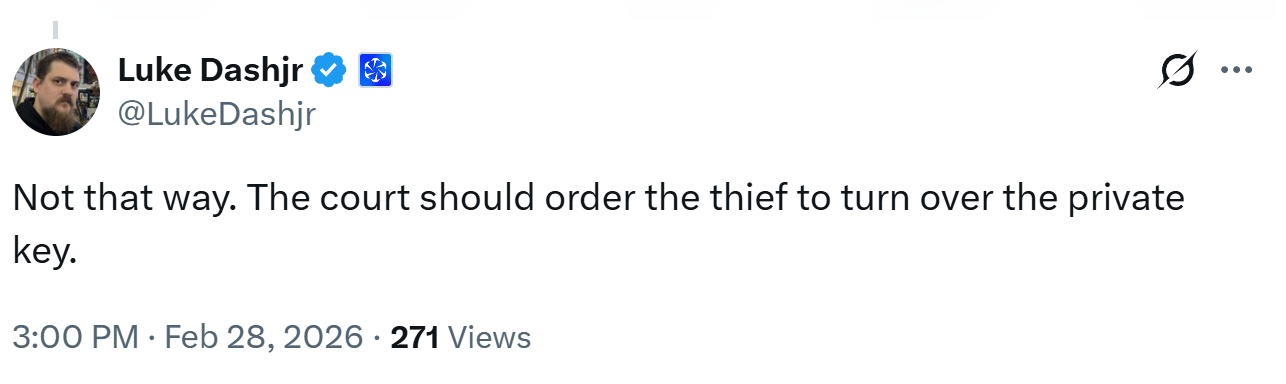 Karpelès también reconoció que este sería el argumento más sólido en contra de la propuesta, pero insistió en que el caso específico es lo suficientemente diferente, ya que existe coincidencia entre las fuerzas del orden y la comunidad de que la dirección en cuestión contiene Bitcoin robado de Mt. Gox.