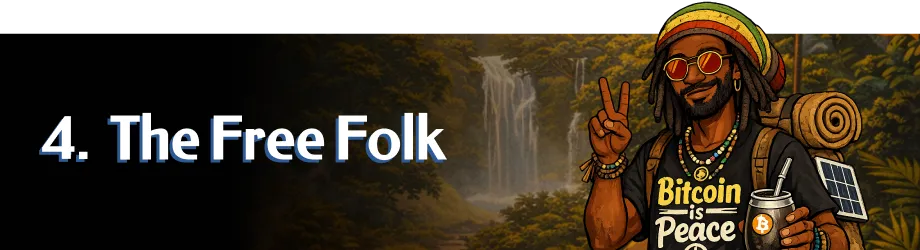 Vive en una furgoneta. Paga los tacos con Lightning. Podría estar huyendo del IRS (pero solo espiritualmente). Creen que Bitcoin es paz, amigo. Y también caos. Y también libertad.