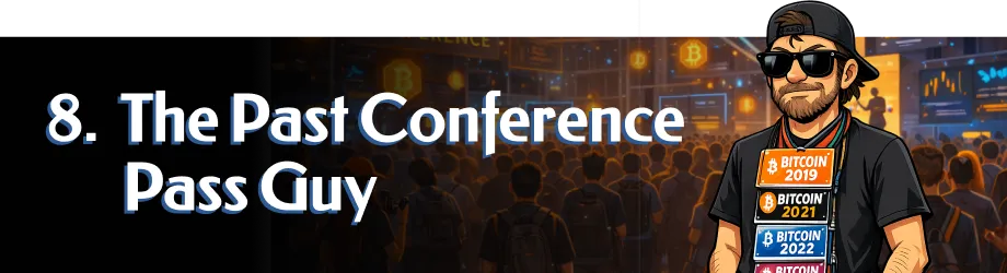 Ruidoso. Amigable. Abrazador. El “Bitcoin Bro” es tu animador para la hiperbitalización. No sabe qué significa «joules por terahash», pero sabe dónde está el bar más cercano y gritará «¡Compra la baja!» durante la sesión de preguntas y respuestas de tu panel.