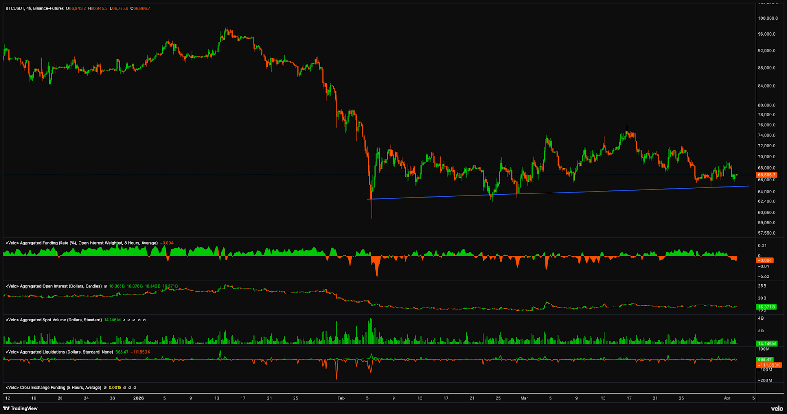 La acción del precio actual refleja un mercado que se mueve lateralmente y se consolida, mientras los traders buscan factores de flujo de capital o narrativas que los lleven a realizar apuestas direccionales más grandes.